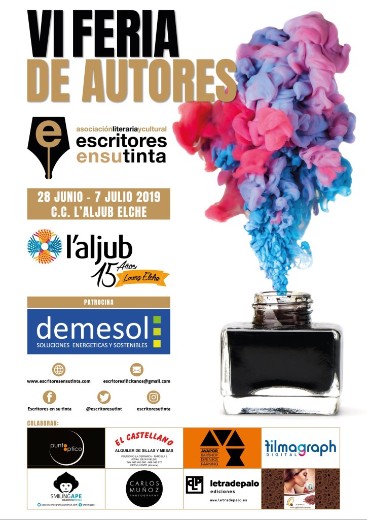 A partir de este viernes 28 de junio, y por sexto año consecutivo, el Centro Comercial l’Aljub acoge la VI Feria de Autores organizada por la “Asociación Literaria y Cultural Escritores en su tinta”, siendo la primera feria de estas características, sin presencia de editores o librerías, que se celebra en España. Hasta el domingo 7 de julio, 17 escritores de Elche, Alicante, Vega Baja y Madrid se dan cita en la plaza central de este Centro Comercial para presentar sus libros.