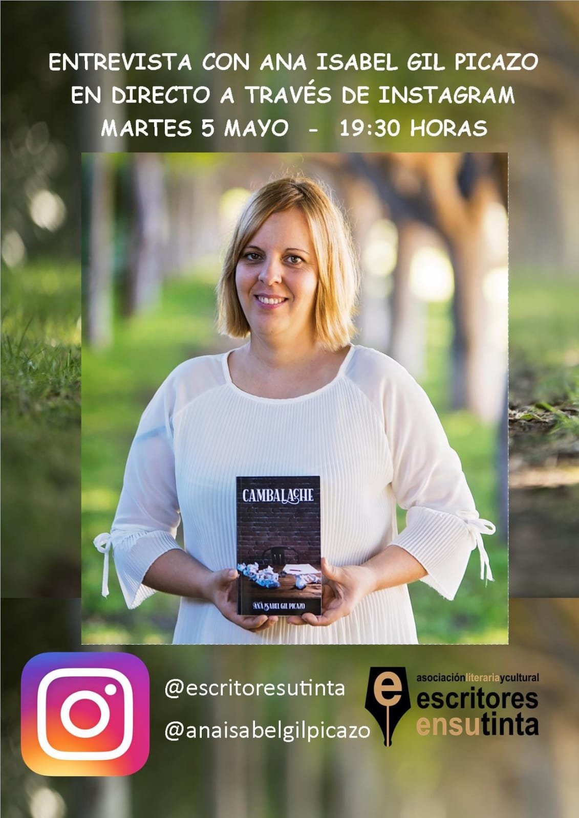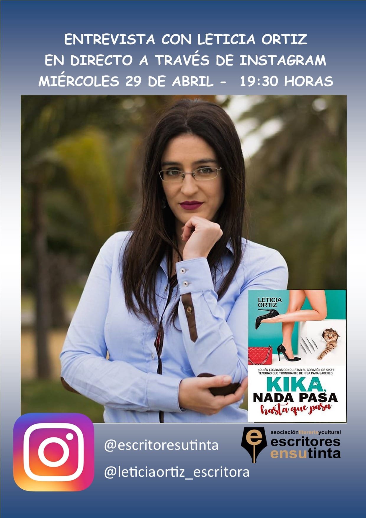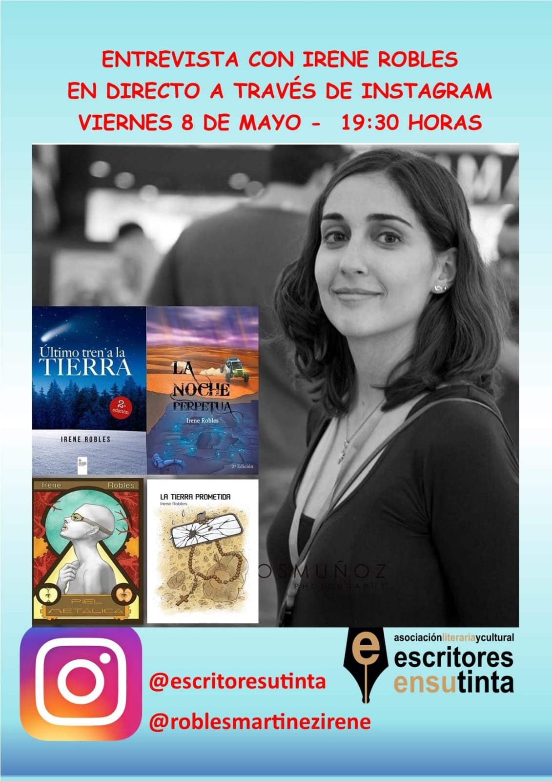 Desde el próximo 26 de abril os vamos a acompañar desde casa. Todos los días a las 19’30 horas tendremos entrevistas con escritores y escritoras de la asociación. Será a través de instagram y totalmente en directo. Podrás ver las entrevistas en la cuenta de instagram de la asociación @escritoresutinta y en las cuentas de cada uno de los escritores. La programación es la siguiente: