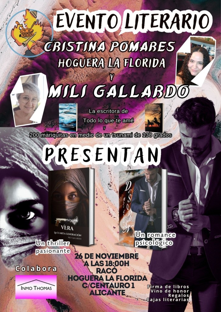 El próximo 26 de noviembre nuestra compañera Mili Gallardo presentará sus dos últimos libros. Lo hará patrocinada por Hoguera La Florida y acompañada de Cristina Pomares en el Racó de la hoguera (en Calle Centauro, n°1, de Alicante, a las 18:00).