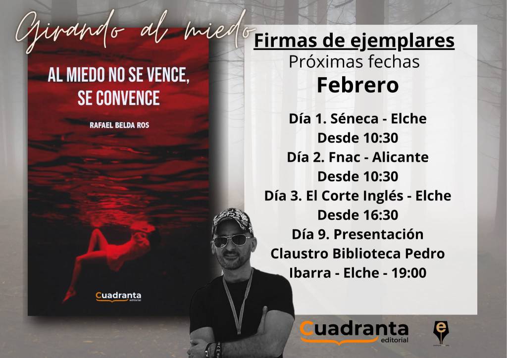 El autor ilicitano Rafael Belda Ros continúa firmando ejemplares en su gira «Girando al miedo», ofreciéndonos la oportunidad de descubrir su libro «Al miedo no se vence, se convence». En esta obra, el autor busca resaltar la belleza del miedo para evitar que obstaculice, permitiendo así que surjan con total libertad otros muchos sentimientos.