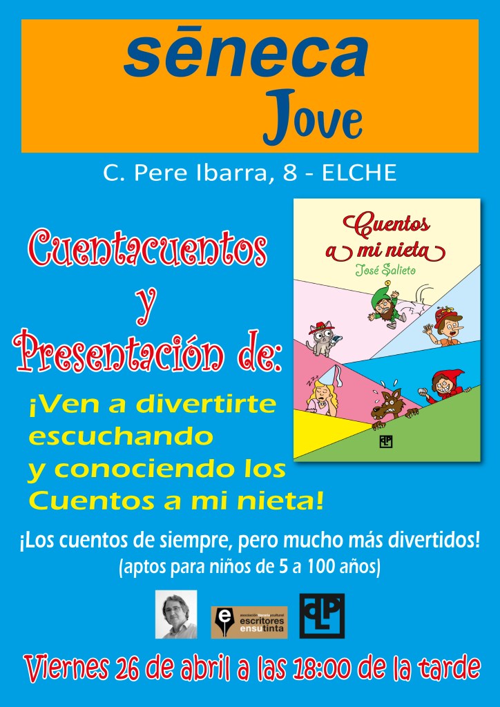 De nuevo este viernes tenemos la oportunidad de pasar un rato muy divertido. ¿Quieres divertirte con tus hijos, nietos o sobrinos, con los cuentos de siempre pero mucho más divertidos? Estos son los cuentos que yo le cuento a mi nieta. ¡Y te aseguro que se lo pasa en grande! ¡Ven a escucharlos en Séneca Jove y trae contigo a los más pequeños! Este viernes 26 de abril a las seis de la tarde puedes llevarte un ejemplar firmado y dedicado para tus peques.