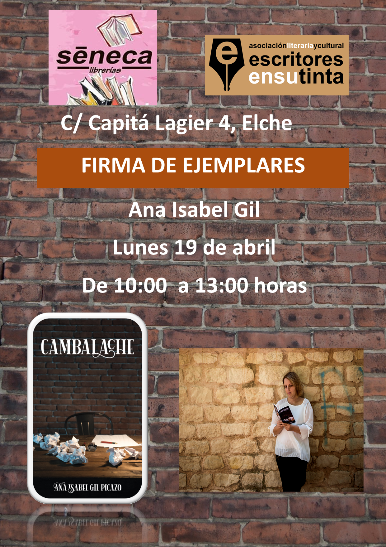 El 19 de abril será el turno de Ana Isabel Gil Picazo que estará firmando ejemplares de su libro de prosa poética «Cambalache». Será en librería Séneca, situada en la calle Capitá Lagier 4 de Elche.