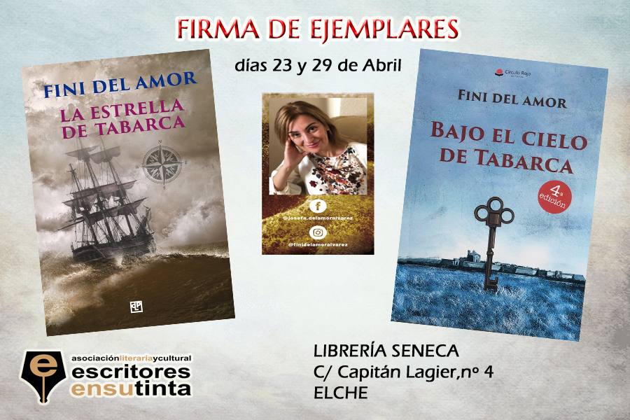 Fini del Amor estará en Librería Séneca los días 23 y 20 de abril firmando ejemplares de sus novelas «bajo el cielo de Tabarca» y «la Estrella de Tabarca»-