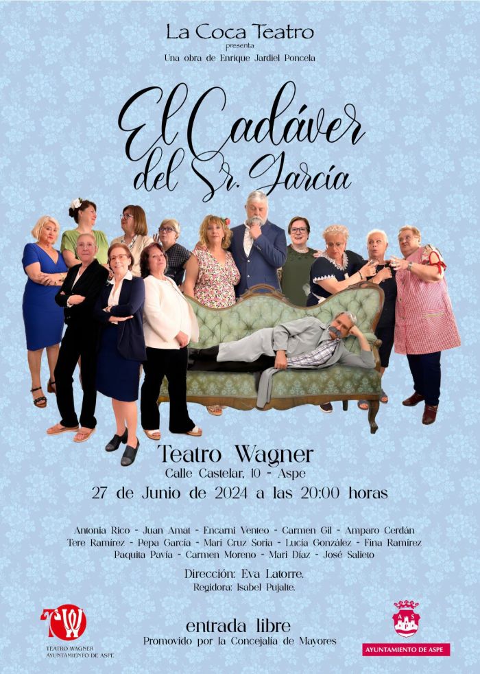 Nuestro compañero José Salieto participará este jueves 27 de junio en la obra que han preparado los alumnos del taller de teatro para mayores de 60 años que promueve la Concejalía de Mayores del Ayuntamiento de Aspe, con una adaptación de esta divertida obra de Enrique Jardiel Poncela. Las sorpresas, los giros inesperados y la peculiaridad … Continuar leyendo EL CADÁVER DEL SEÑOR GARCÍA