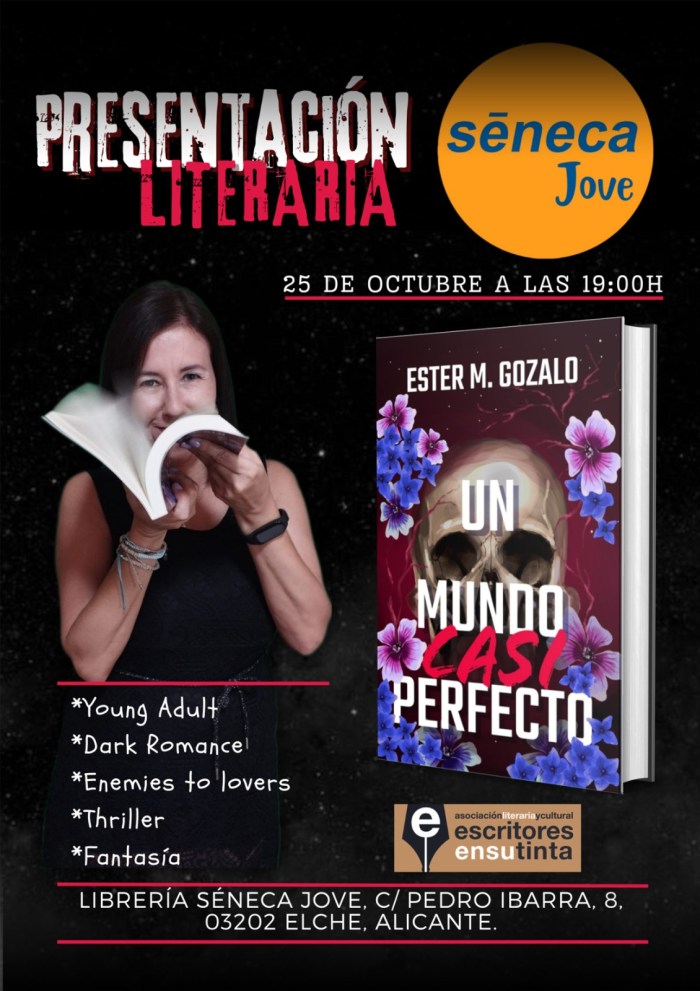 La autora Ester M. Gozalo realizará la primera presentación de su novela en librería Séneca Jove (Elche). Un thriller muy especial y nada convencional que te encantará descubrir. Así que si quieres que sea la propia escritora la que te hable de su nueva obra, no dudes en acudir al evento y llevarte tu ejemplar … Continuar leyendo PRESENTACIÓN DE «UN MUNDO PERFECTO»