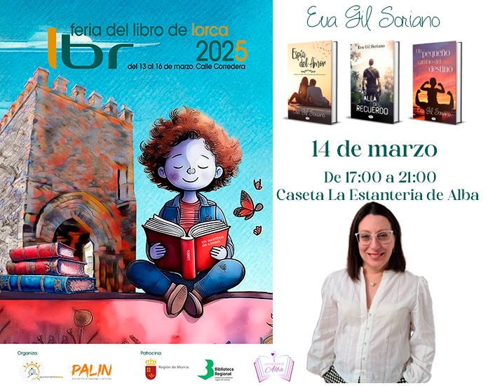 La autora Eva Gil Soriano estará presente en la Feria del libro de Lorca. Si te gustan sus novelas o aún no las conoces, ahora tienes la oportunidad de hacerlo, además de poder charlar con Eva y que ella misma te hable sobre sus obras y te recomiende la más apropiada para ti. Además, te … Continuar leyendo FIRMA DE LIBROS EVA GIL SORIANO