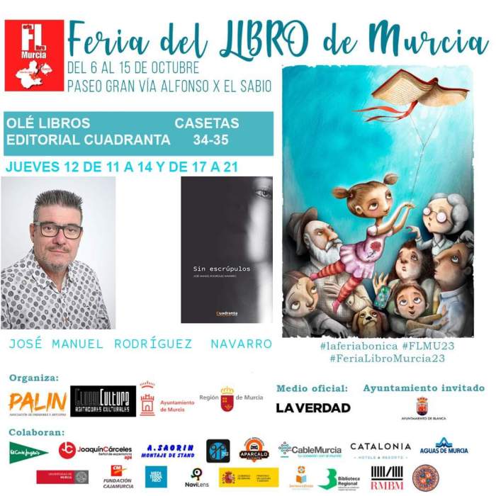 El jueves día 12 podrás encontrar a José Manuel Rodríguez firmando su novela «Sin escrúpulos» (Editorial Cuadranta) en las casetas 34-35 desde las 11:00 hasta las 14:00 y desde las 17:00 hasta las 21:00 h.