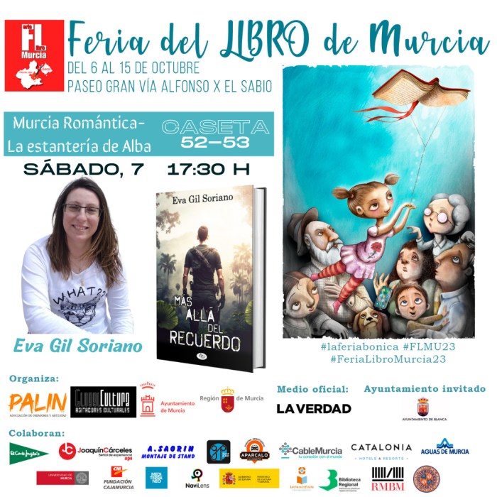 Eva Gil cuenta ya con una enorme cantidad de fieles lectoras y lectores enamorados de sus historias. Ahora puedes aprovechar para conocerla y llevarte sus obras dedicadas. Además, encontrarás su última obra «Más allá del recuerdo». Estará firmando en las casetas de Murcia Romántica y La estantería de Alba de 17:30 a 21:30.