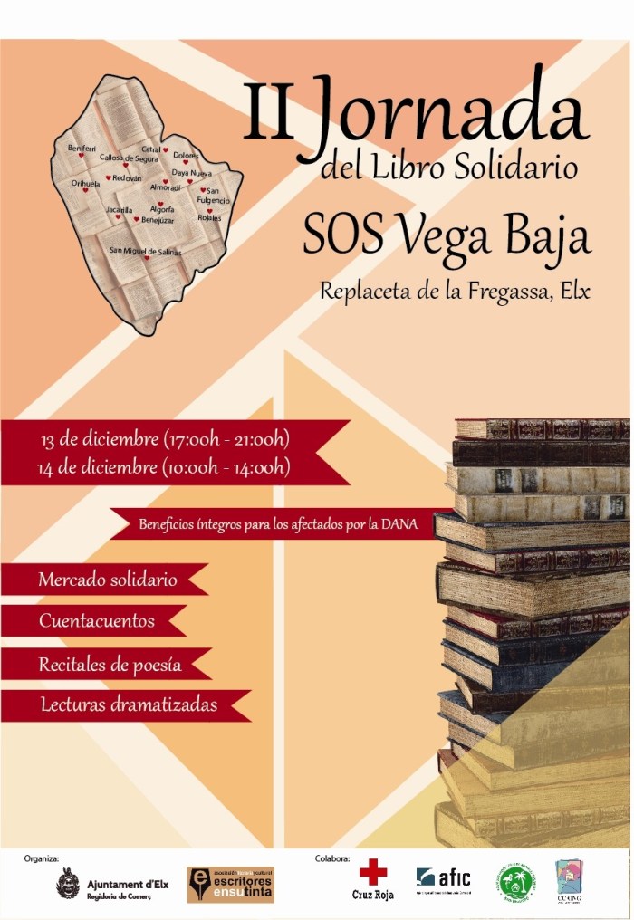 Este próximo viernes 13 y sábado 14 de diciembre, en la Replaceta de la Fregasa de Elche, Escritores en su Tinta colaborará solidariamente en la II Jornada del Libro Solidario SOS Vega Baja. Como se observa en la imagen adjunta, también participaremos en diversas actividades culturales. Seremos: Sheila Lumen, Matías González Pinos, Ángel Valor, Tonyi … Continuar leyendo II jornada del libro solidario SOS Vega Baja