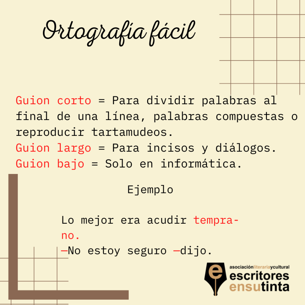 GUION CORTO: para dividir palabras al final de una línea, palabras compuestas o reproducir tartamudeos.